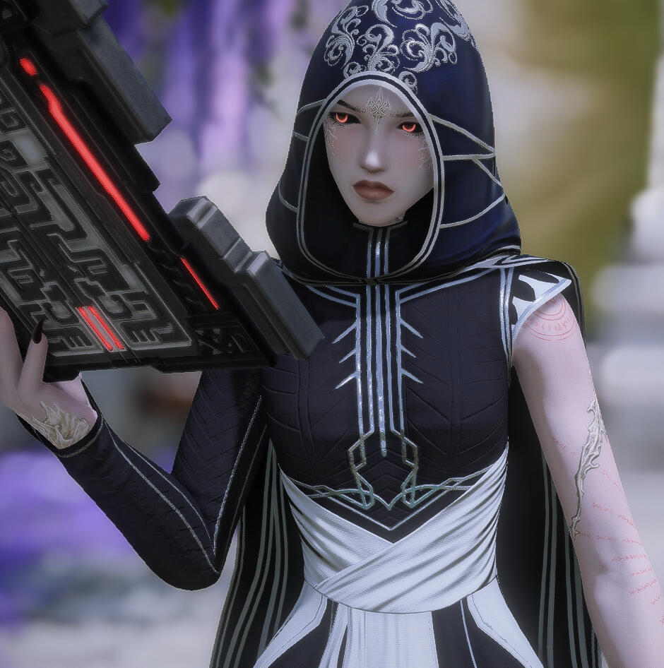 Aru isn't one to easily share and spoil her secrets upon a first meeting, the story of her birth and upbringing being one of such stories. She makes it clear she hails from beneath the Ruby Sea in the city of Sui-no-sato, but the details of the rest are kept vague, just how this Raen likes it. The closer one might find themselves to her, the more they may be able to chip away.How Aru spends the present is much more easily discerned. She can most easily be found tending to her home nestled against one of La Nocea's beaches, though occasionally she can be seen in major cities such as Limsa Lominsa and Ul'dah conducting business. She bounces here and there between spending time with her fiancé, studying and reading, and expanding her large book collection.